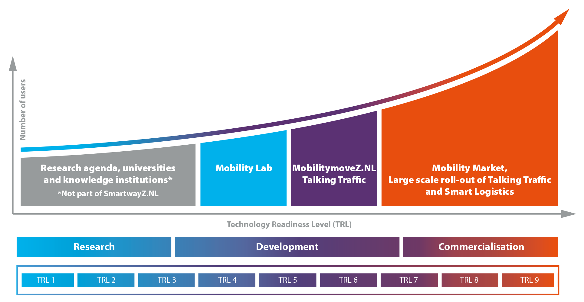 We can be of assistance to businesses in various phases: The Mobility Lab helps start-ups test their prototypes in a practical setting. MobilitymoveZ.NL makes it possible to test more advanced newly developed mobility concepts in a real environment, with real users. Mobility Market provides a platform through which concepts that have already been proven can be scaled up. In addition, logistics companies can take part in the Smart Logistics project.